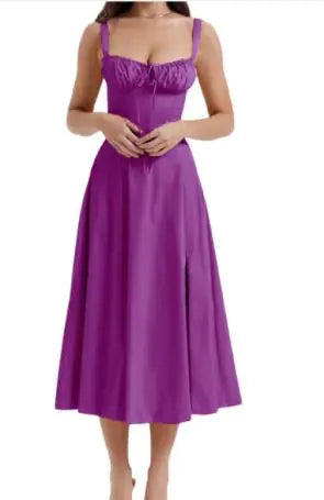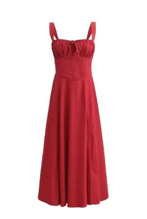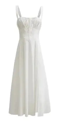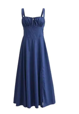 The high-waisted silhouette paired with an A-line long skirt creates a graceful, figure-flattering shape, while the sleeveless sling design offers a breezy, contemporary feel. Perfect for garden parties, evening strolls, or chic daytime outings, this versatile dress transitions seamlessly from casual elegance to special occasion wear.